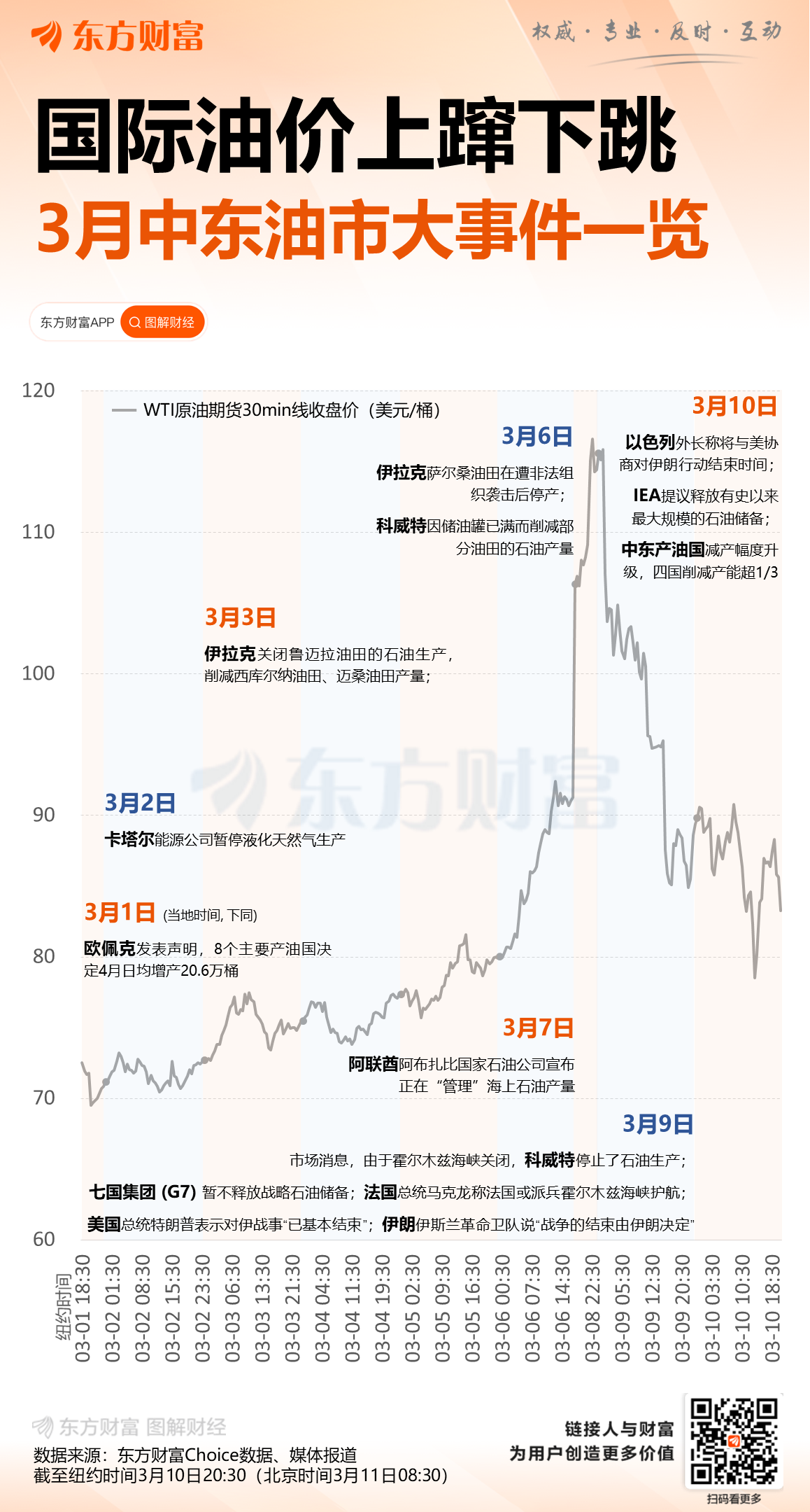 当地时间周二(3月10日),美国能源信息署(EIA)在其月度报告中表示,由于伊朗战争扰乱原油供应,未来两个月布伦特原油价格预计将维持在95美元/桶上方,之后随着供应恢复,到今年年底可能回落至约70美元/桶。