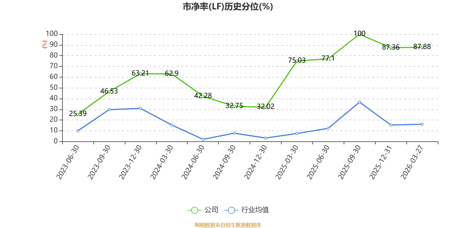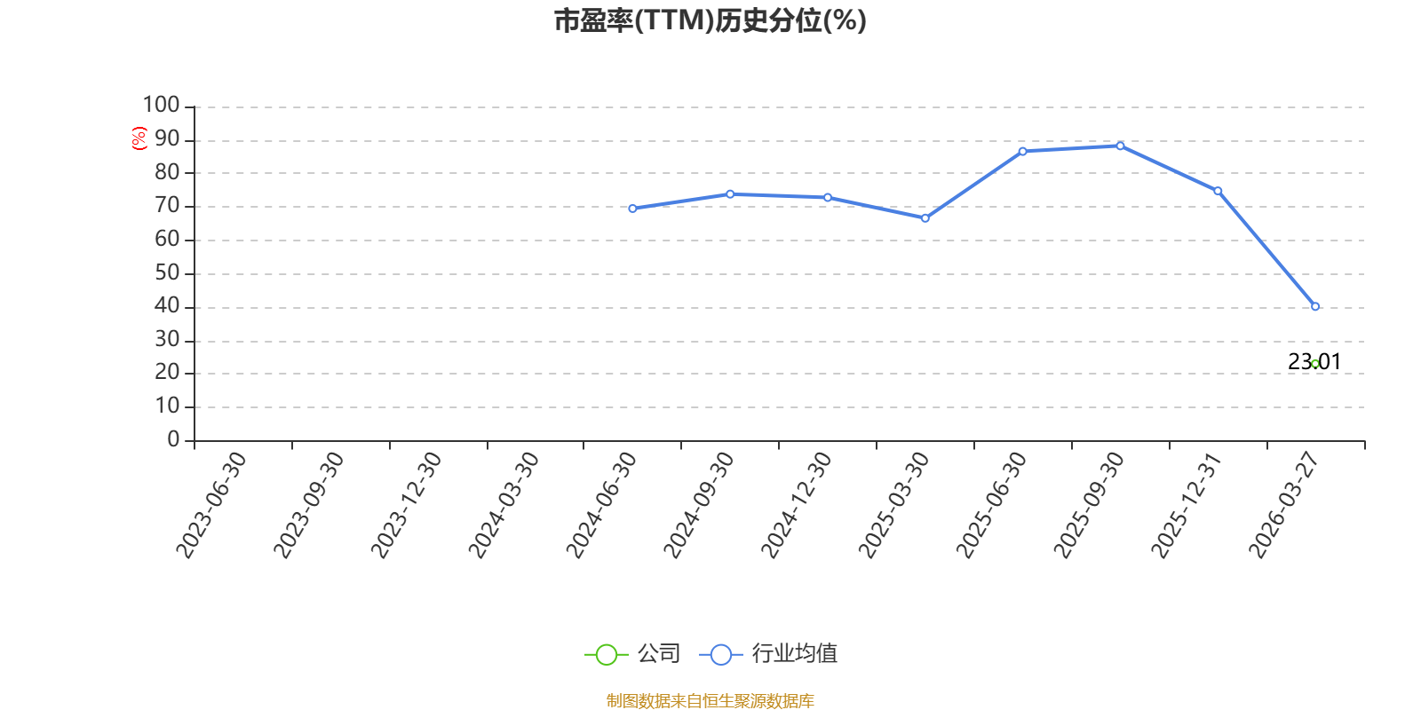 市盈率、市净率为负时,不显示当期分位数,会导致折线图中断。