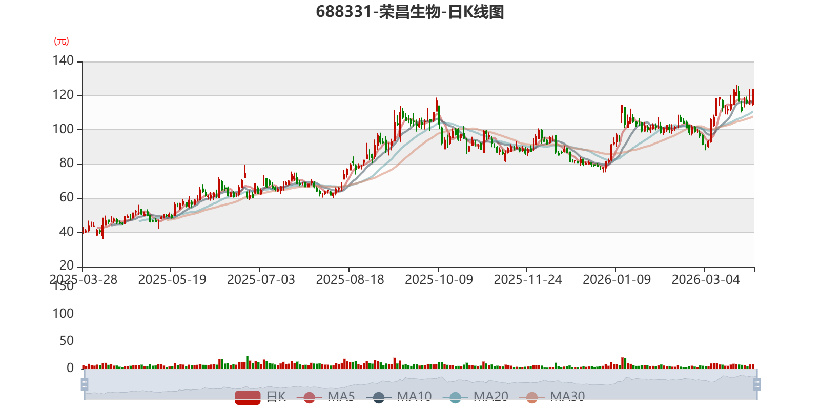 以3月27日收盘价计算,荣昌生物目前市盈率(TTM)约为98.3倍,市净率(LF)约19.33倍,市销率(TTM)约21.46倍。