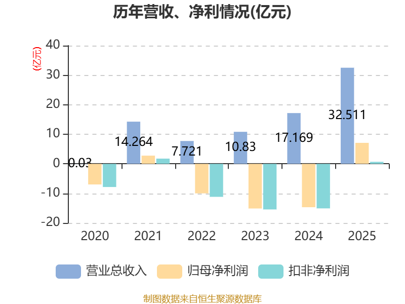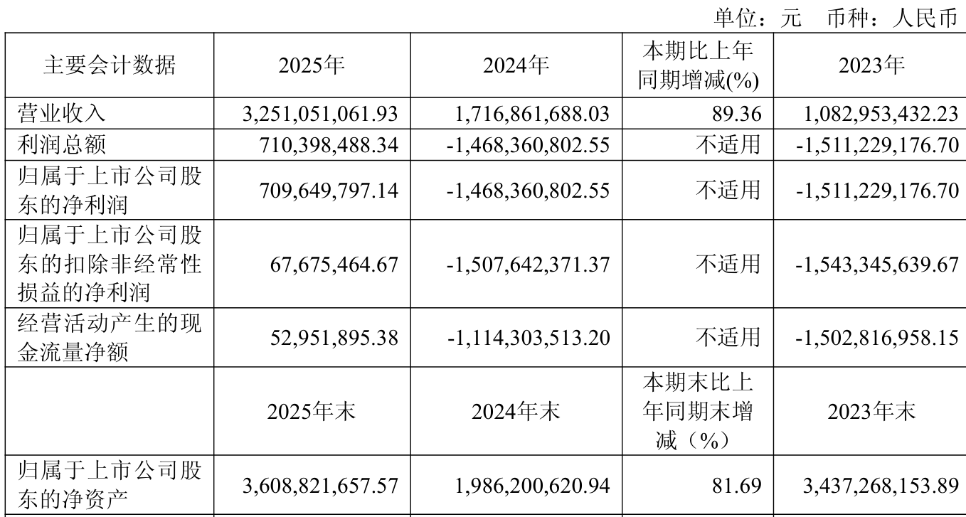 中证智能财讯荣昌生物(688331)3月28日披露2025年年度报告。2025年,公司实现营业总收入32.51亿元,同比增长89.36%;归母净利润7.1亿元,同比扭亏;扣非净利润6767.55万元,同比扭亏;经营活动产生的现金流量净额为5295.19万元,上年同期为-11.14亿元;报告期内,荣昌生物基本每股收益为1.29元,加权平均净资产收益率为24.87%。
