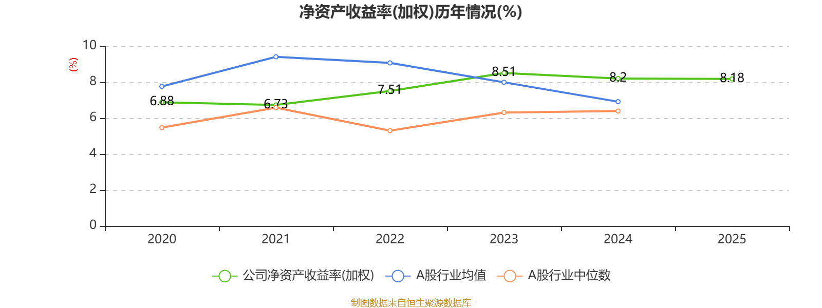 数据显示,2025年公司平均净资产收益率为8.18%,较上年同期下降0.02个百分点。