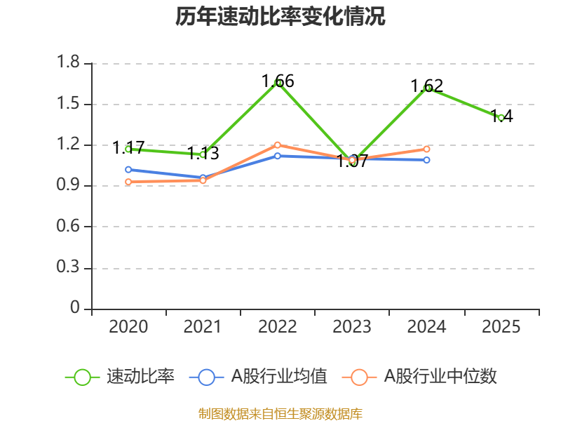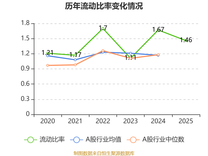 2025年,公司流动比率为1.46,速动比率为1.4。
