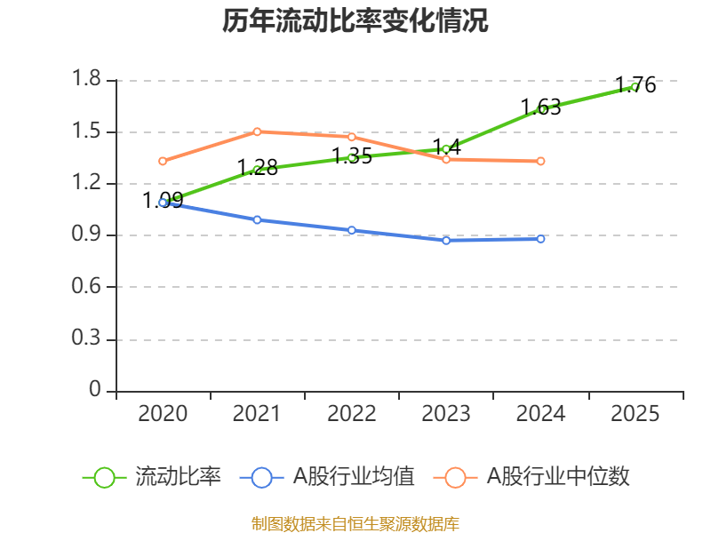 2025年,公司流动比率为1.76,速动比率为1.76。