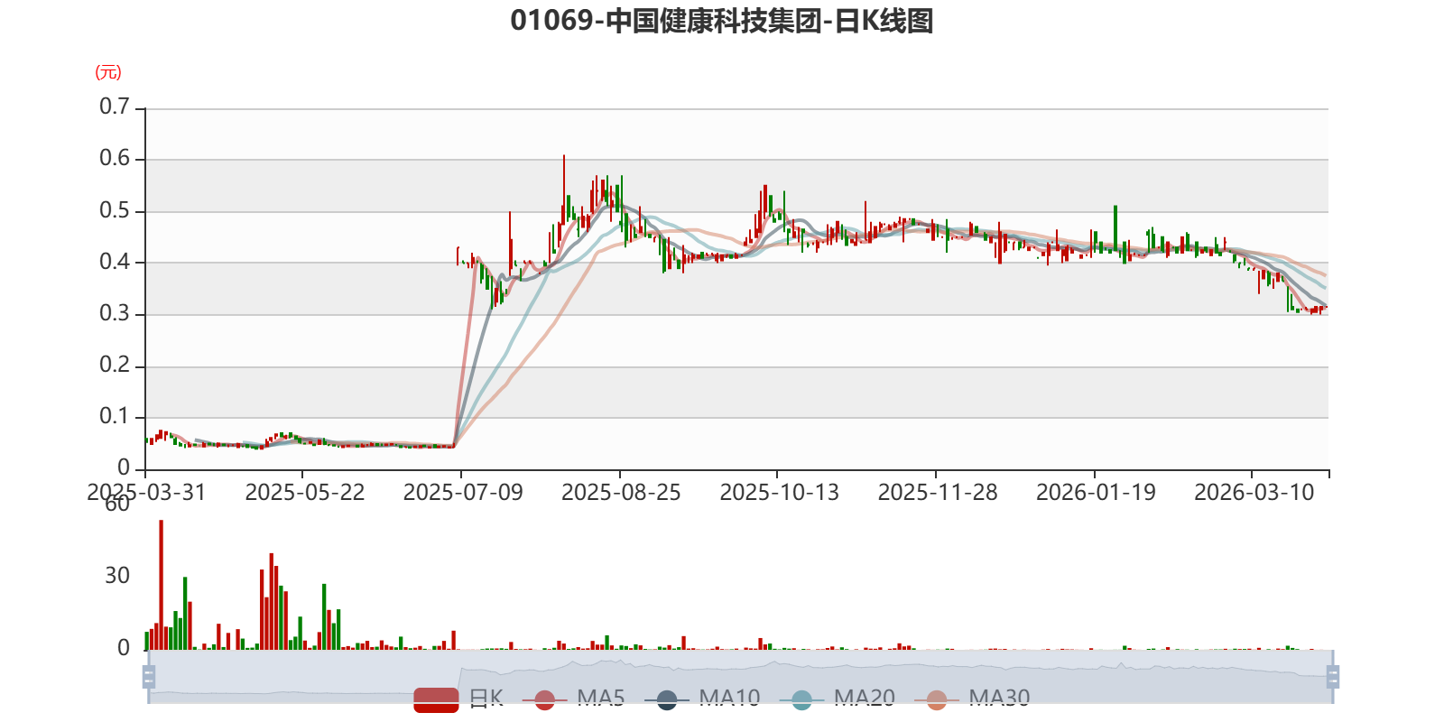 以3月31日收盘价计算,中国健康科技集团目前市盈率(TTM)约1.27倍,市净率(TTM)约0.51倍,市销率(TTM)约0.31倍。