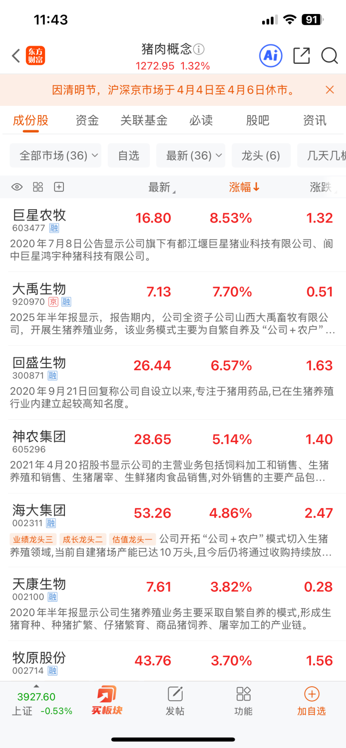 早盘异动!猪肉概念逆势上涨 去产能进入关键窗口期