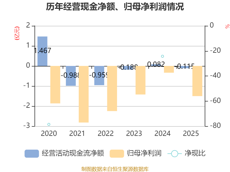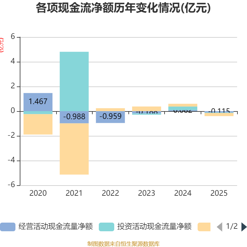 截至2025年,公司经营活动现金流净额为-1149.38万元,同比减少1968.79万元;筹资活动现金流净额-2501.53万元,同比减少4749.78万元;投资活动现金流净额-372.38万元,上年同期为2910.17万元。