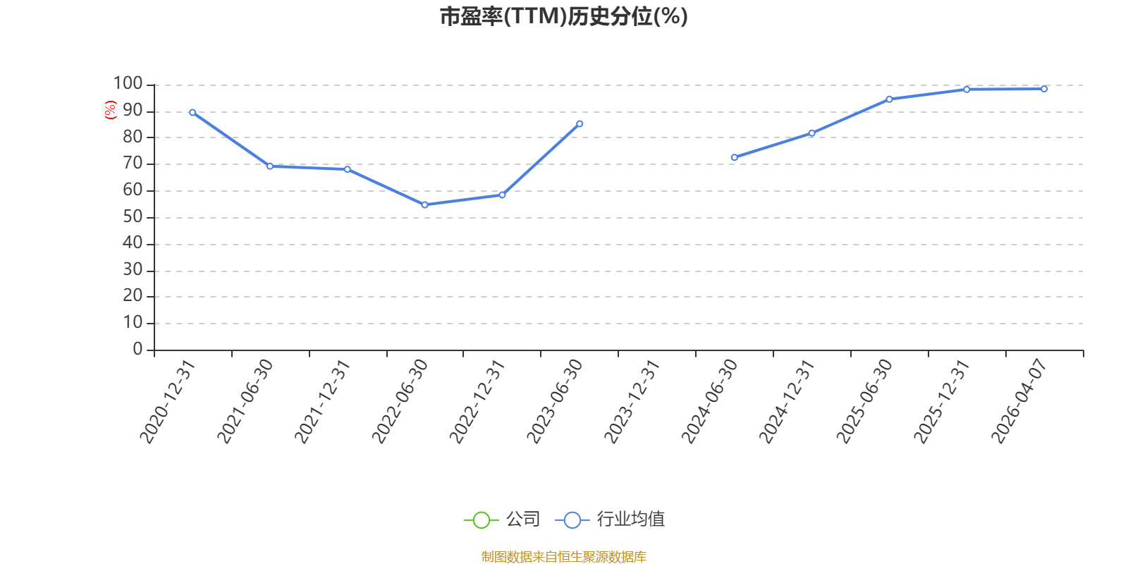市盈率、市净率为负时,不显示当期分位数,会导致折线图中断。