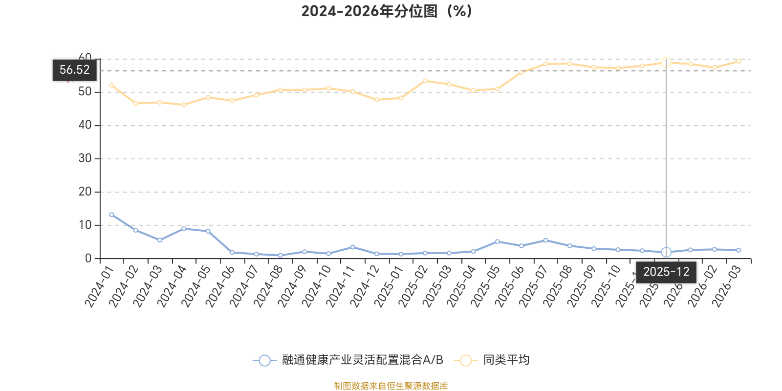 通过所选区间该基金净值增长率分位图,可以观察该基金与同类基金业绩比较情况。图为坐标原点到区间内某时点的净值增长率在同类基金中的分位数。