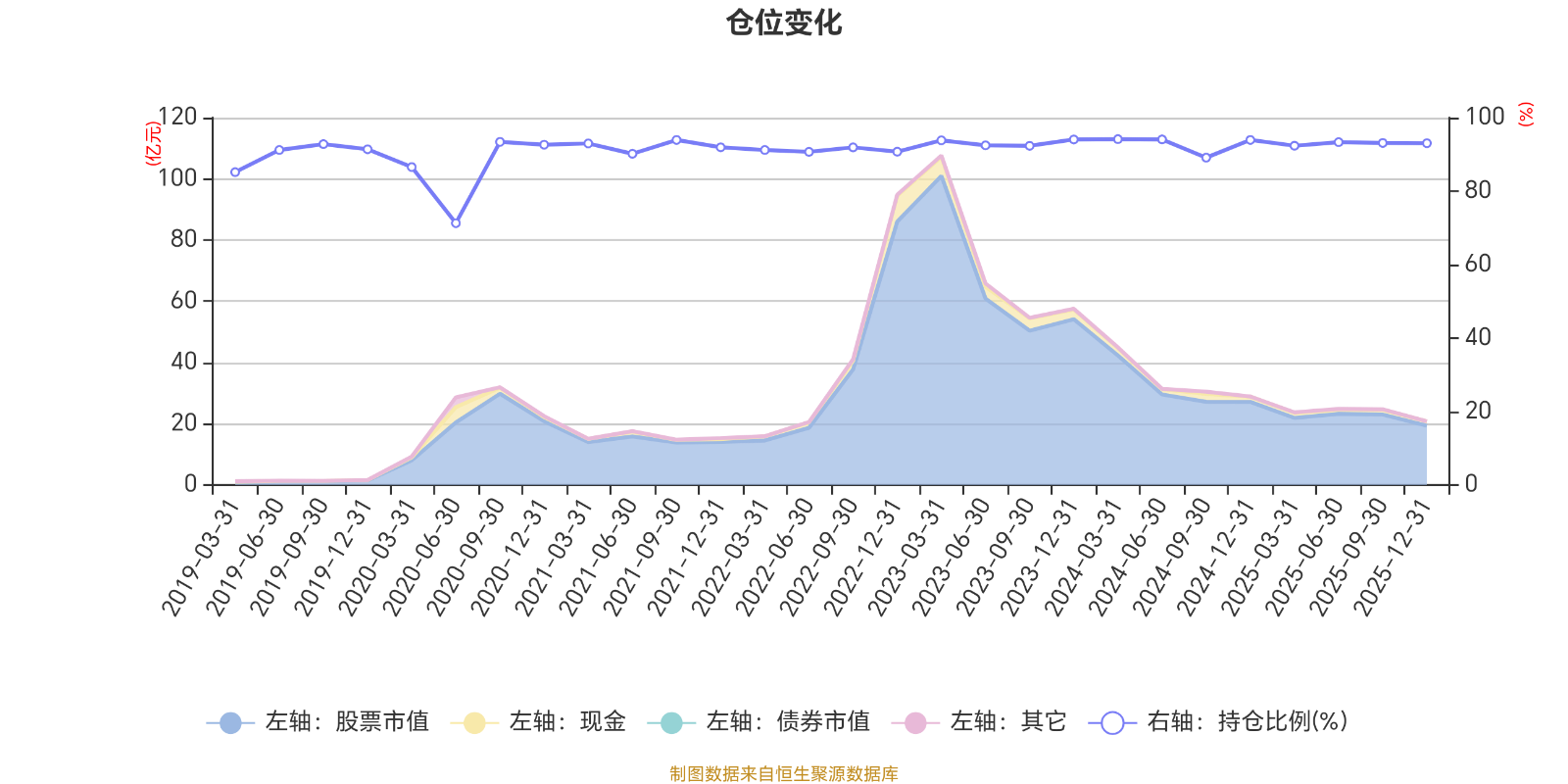 据定期报告数据统计,近三年平均股票仓位为92.97%,同类平均为72.57%。2024年一季度末基金达到94.13%的最高仓位,2020年上半年末最低,为71.26%。