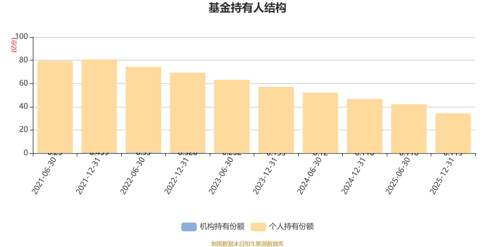 截至2025年12月31日,基金持有人共计6.11万户,合计持有34.36亿份。其中管理人员工持有101.63万份,占比0.03%,机构持有份额占比0.33%,个人投资者占比99.67%。