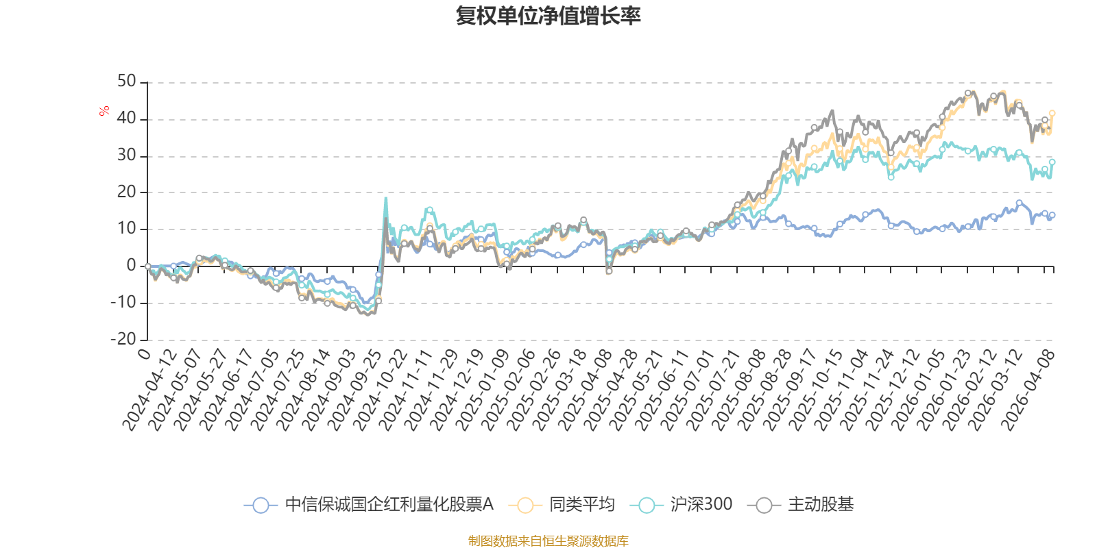 截至4月8日,中信保诚国企红利量化股票A近三个月复权单位净值增长率为3.06%,位于同类可比基金43/121;近半年复权单位净值增长率为5.43%,位于同类可比基金66/121;近一年复权单位净值增长率为9.84%,位于同类可比基金112/120。