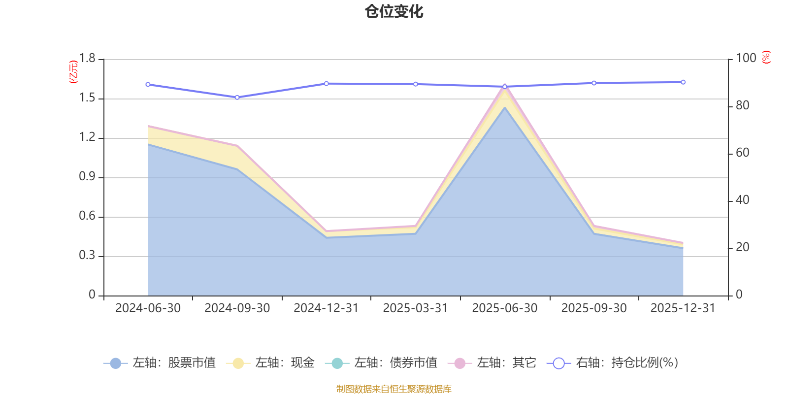 据定期报告数据统计,成立以来平均股票仓位为88.66%,同类平均为88.34%。2025年末基金达到90.27%的最高仓位,2024年三季度末最低,为83.8%。