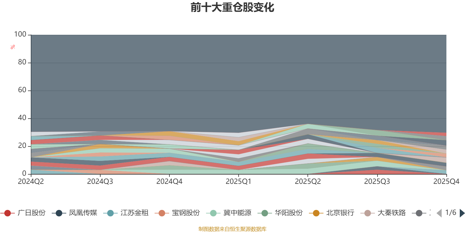 截至2025年末,基金十大重仓股分别是中国神华、恒源煤电、建设银行、交通银行、长沙银行、工商银行、江苏金租、渤海轮渡、建发股份、申能股份。