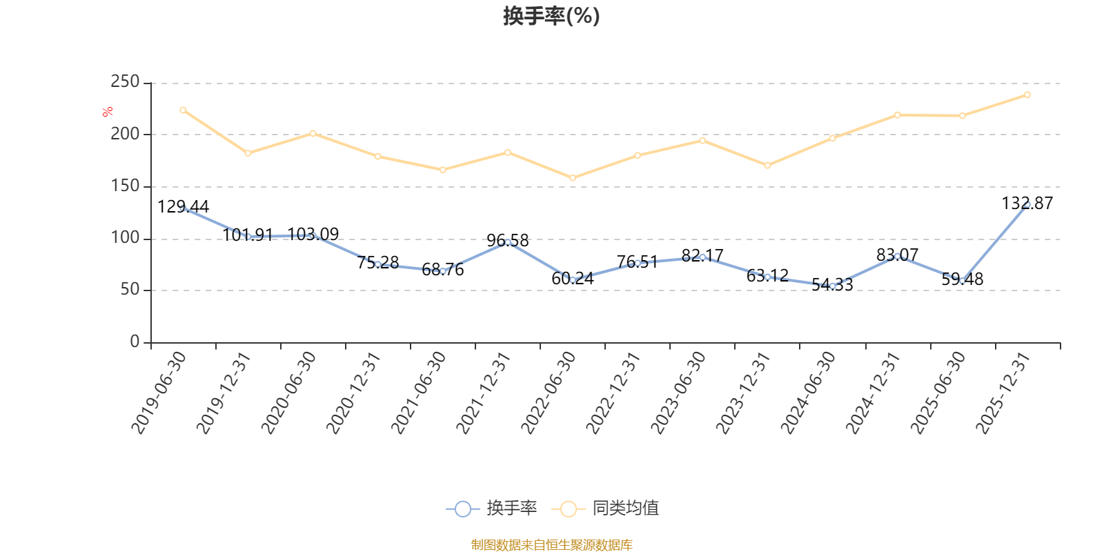 截至2025年12月31日,基金最近一年换手率约188.93%,持续低于同类均值。