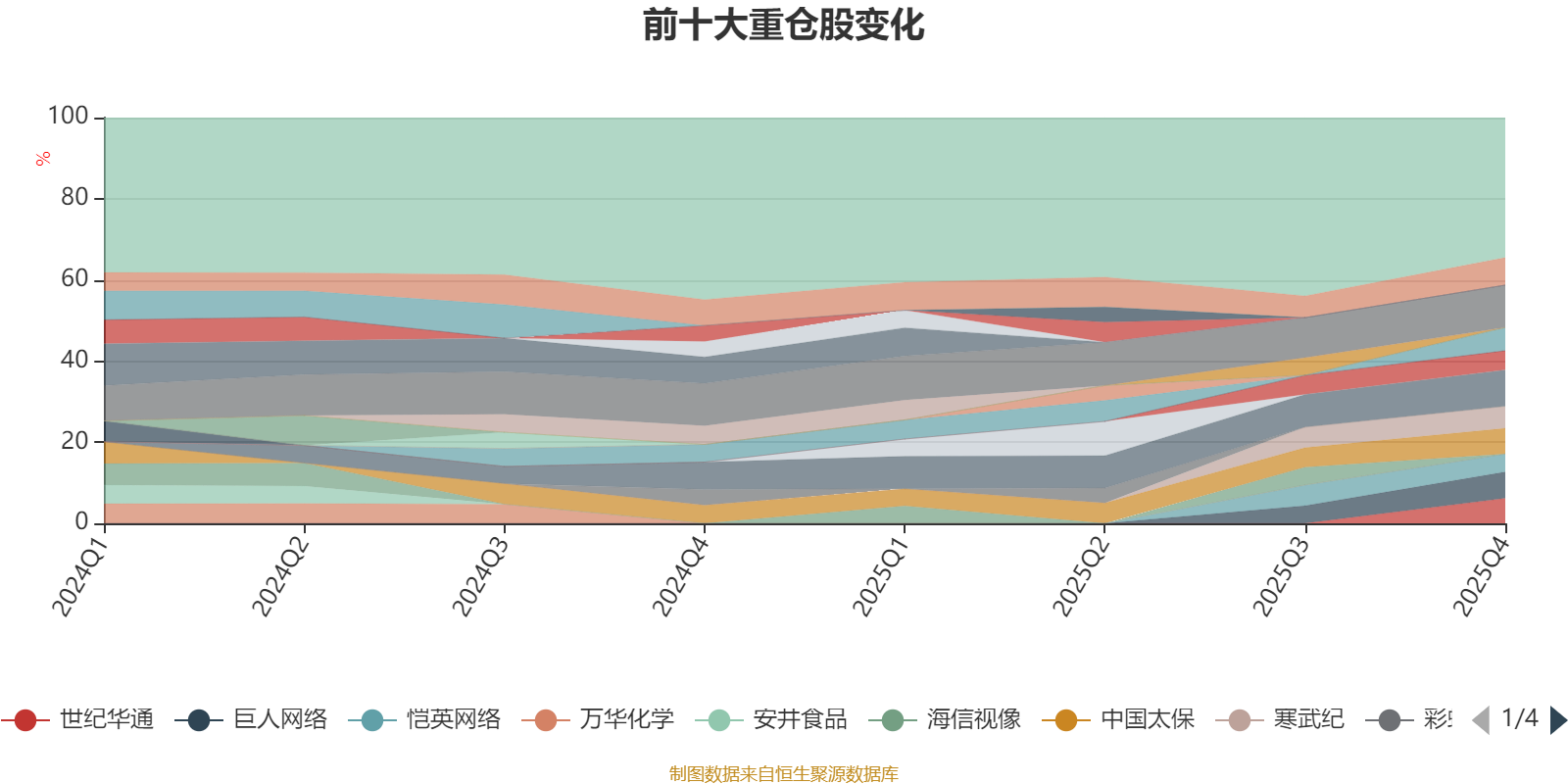该基金持股集中度较高。截至2025年末,基金十大重仓股分别是京东方A、TCL科技、中国人寿、巨人网络、中国太保、世纪华通、中国平安、寒武纪、分众传媒、恺英网络。