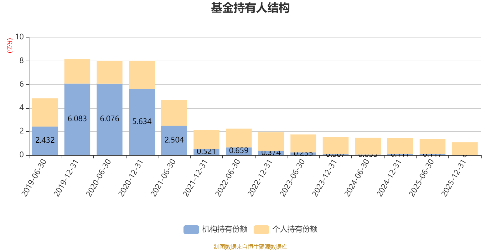 截至2025年12月31日,基金持有人共计2.18万户,合计持有1.1亿份。其中管理人员工持有35.79万份,占比0.33%,机构持有份额占比0.00%,个人投资者占比100.00%。