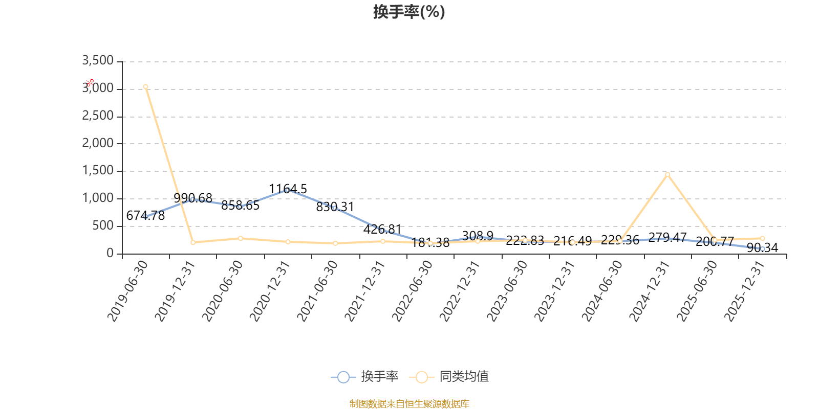 截至2025年12月31日,基金最近一年换手率约287.09%,持续2年低于同类均值。