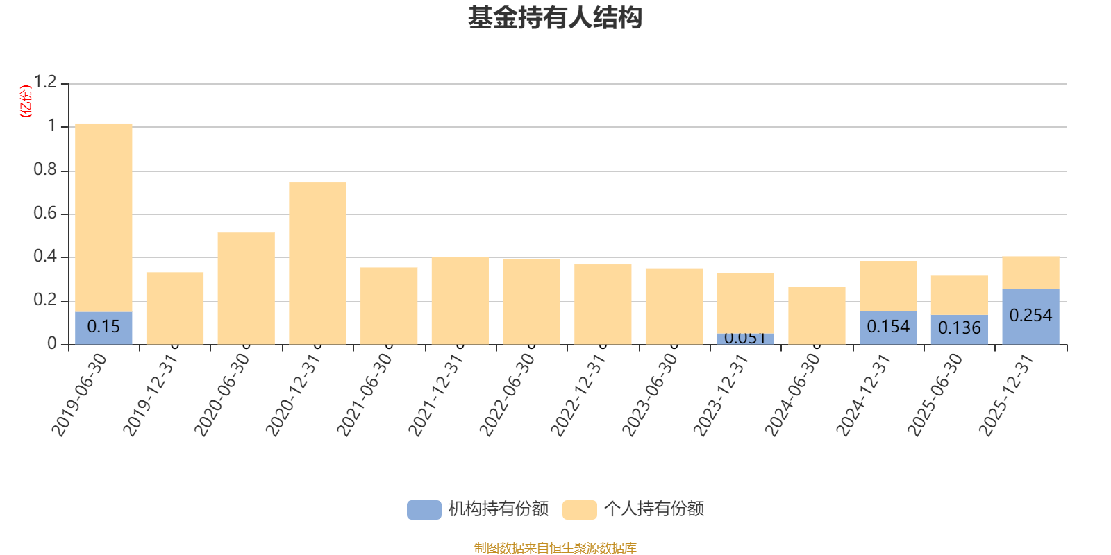 截至2025年12月31日,基金持有人共计7247户,合计持有4049.19万份。其中管理人员工持有6.43万份,占比0.16%,机构持有份额占比62.61%,个人投资者占比37.39%。