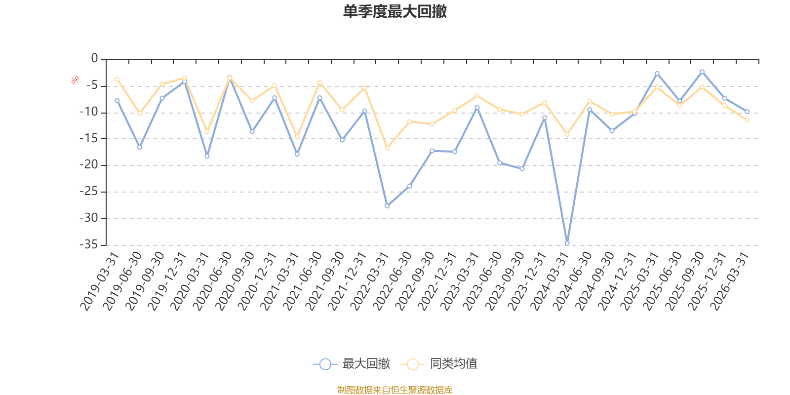 截至4月8日,基金近三年最大回撤为49.6%,同类可比基金排名1211/1264。单季度最大回撤出现在2024年一季度,为34.68%。
