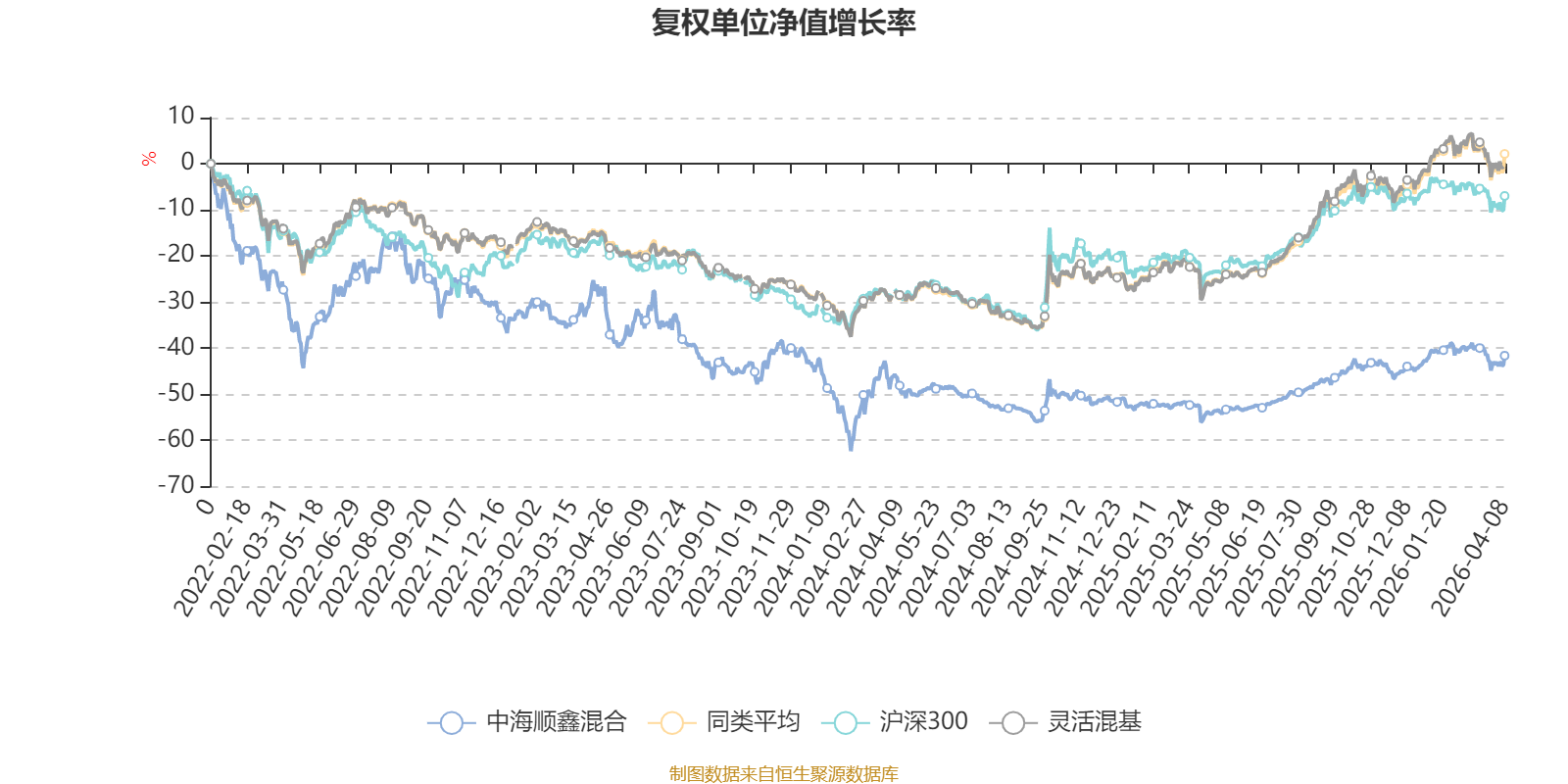 截至4月8日,中海顺鑫混合近三个月复权单位净值增长率为-1.07%,位于同类可比基金793/1287;近半年复权单位净值增长率为2.28%,位于同类可比基金677/1286;近一年复权单位净值增长率为32.07%,位于同类可比基金667/1286;近三年复权单位净值增长率为-21.87%,位于同类可比基金1222/1286。