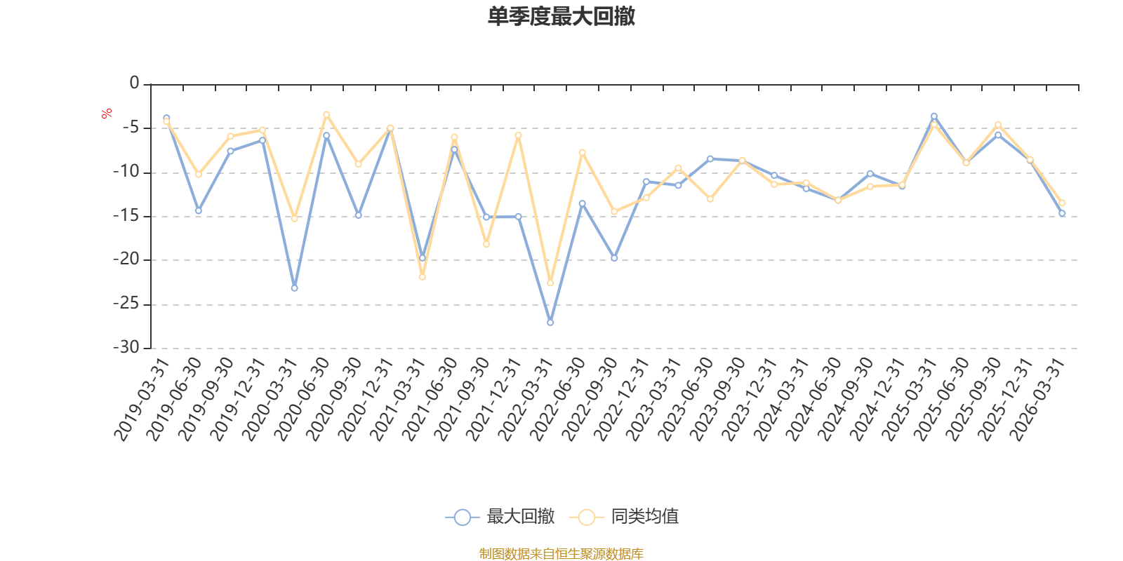 截至4月8日,基金近三年最大回撤为35.08%,同类可比基金排名42/75。单季度最大回撤出现在2022年一季度,为27.08%。