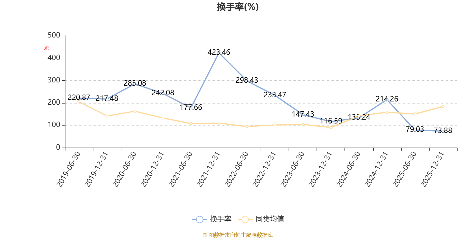 截至2025年12月31日,基金最近一年换手率约155.73%,持续1年低于同类均值。