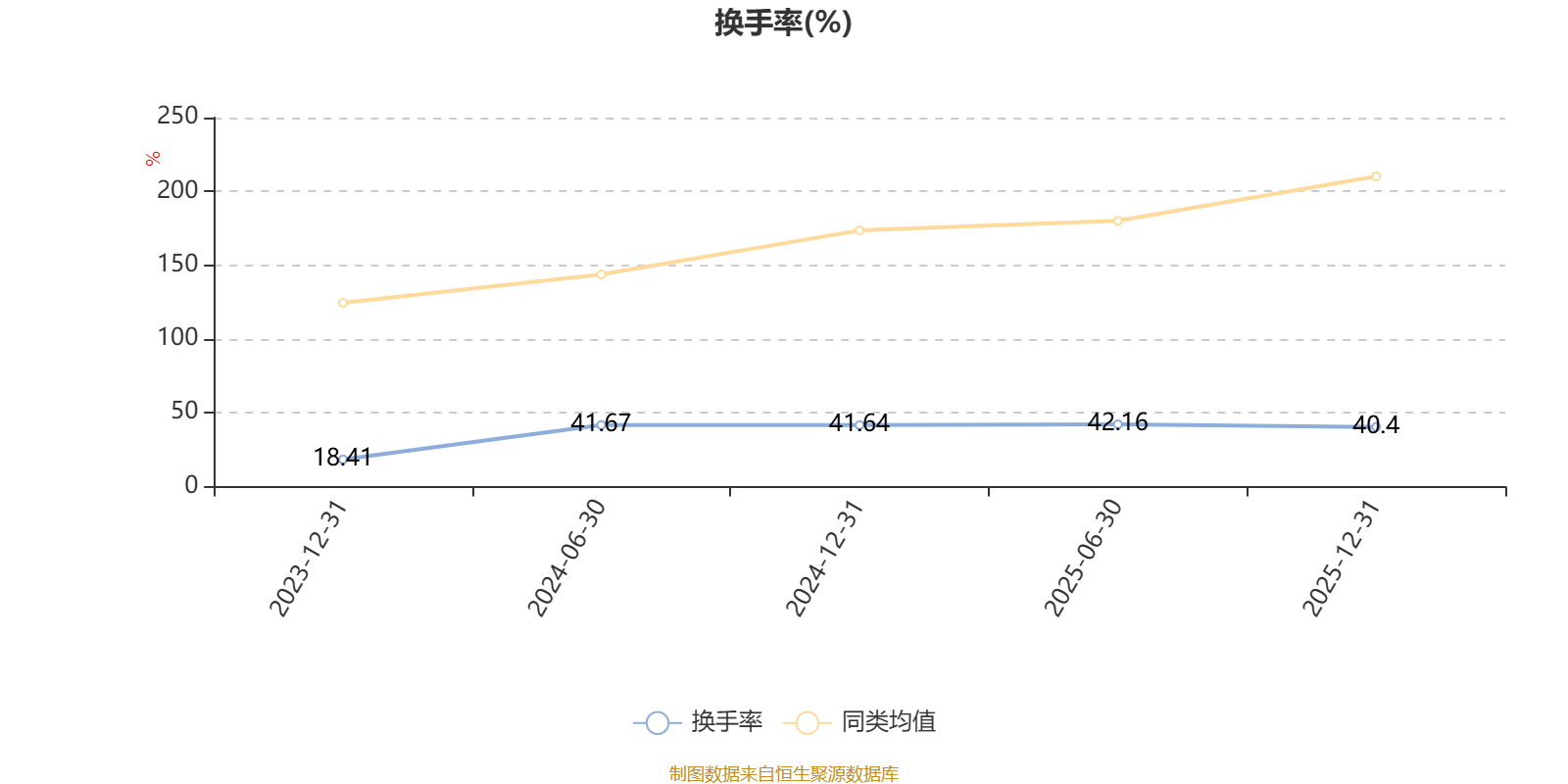 截至2025年12月31日,基金最近一年换手率约82.31%,持续低于同类均值。