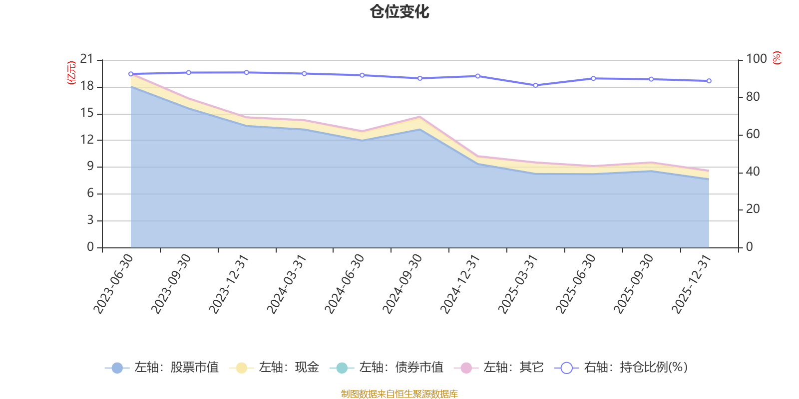 据定期报告数据统计,成立以来平均股票仓位为90.93%,同类平均为86.12%。2023年末基金达到93.31%的最高仓位,2025年一季度末最低,为86.45%。