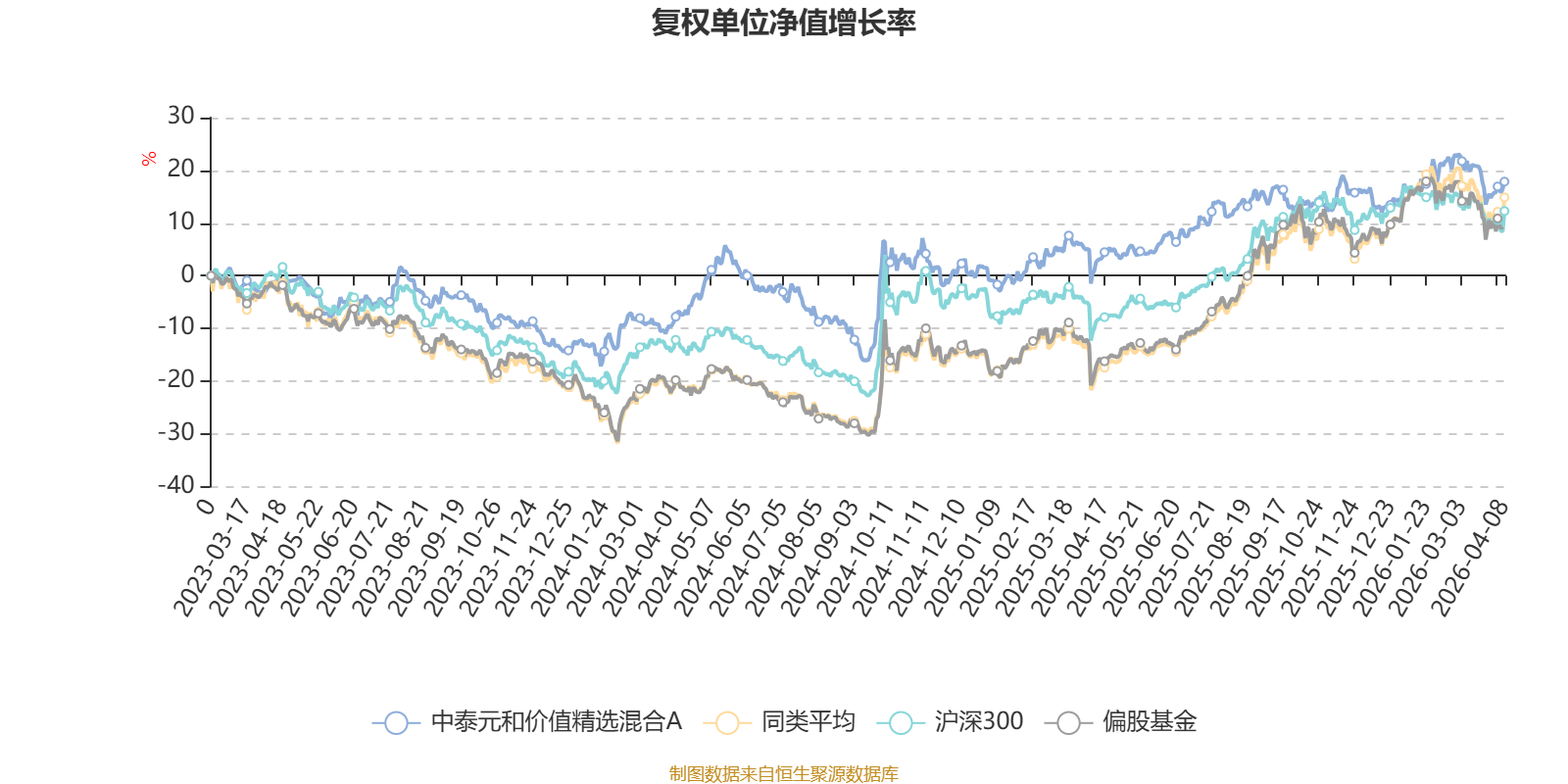 截至4月8日,中泰元和价值精选混合A近三个月复权单位净值增长率为1.14%,位于同类可比基金109/265;近半年复权单位净值增长率为3.39%,位于同类可比基金106/265;近一年复权单位净值增长率为17.39%,位于同类可比基金238/265;近三年复权单位净值增长率为19.50%,位于同类可比基金121/261。