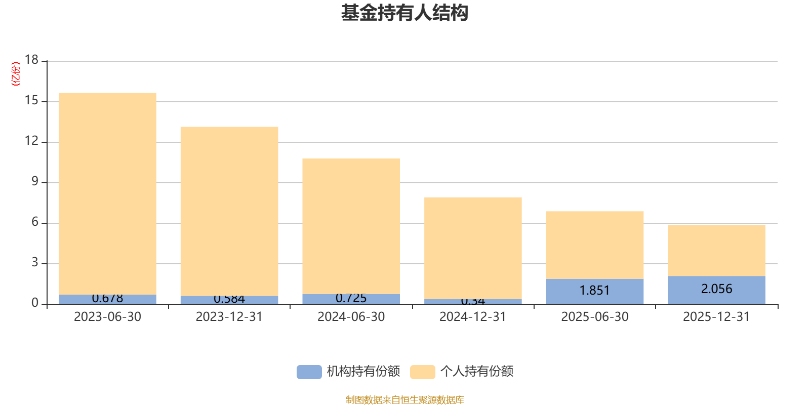 截至2025年12月31日,基金持有人共计7807户,合计持有5.84亿份。其中管理人员工持有203.44万份,占比0.35%,机构持有份额占比35.21%,个人投资者占比64.79%。