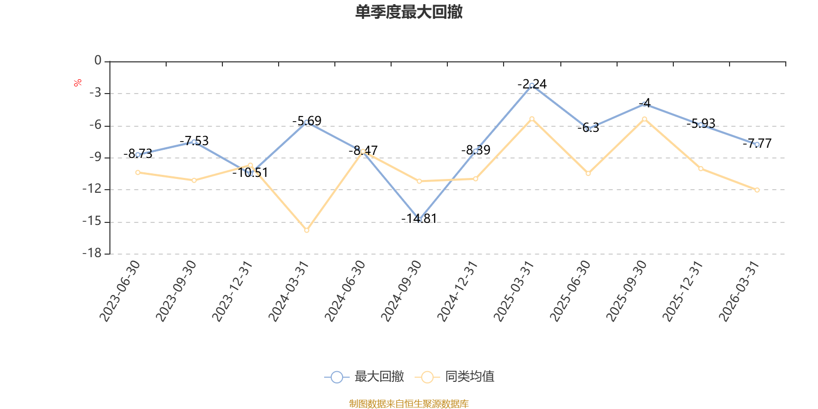 截至4月8日,基金近三年最大回撤为20.7%,同类可比基金排名29/259。单季度最大回撤出现在2024年三季度,为14.81%。