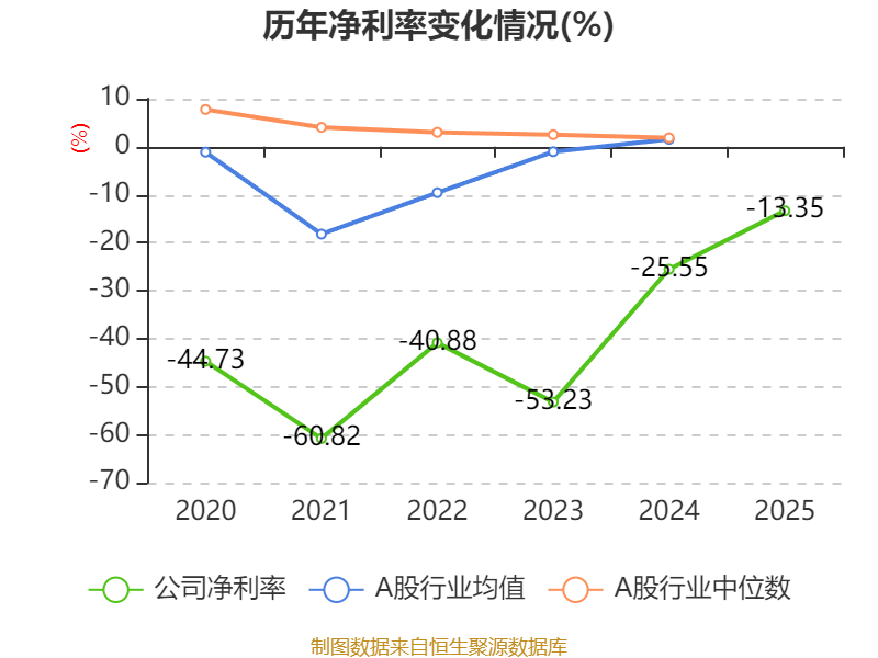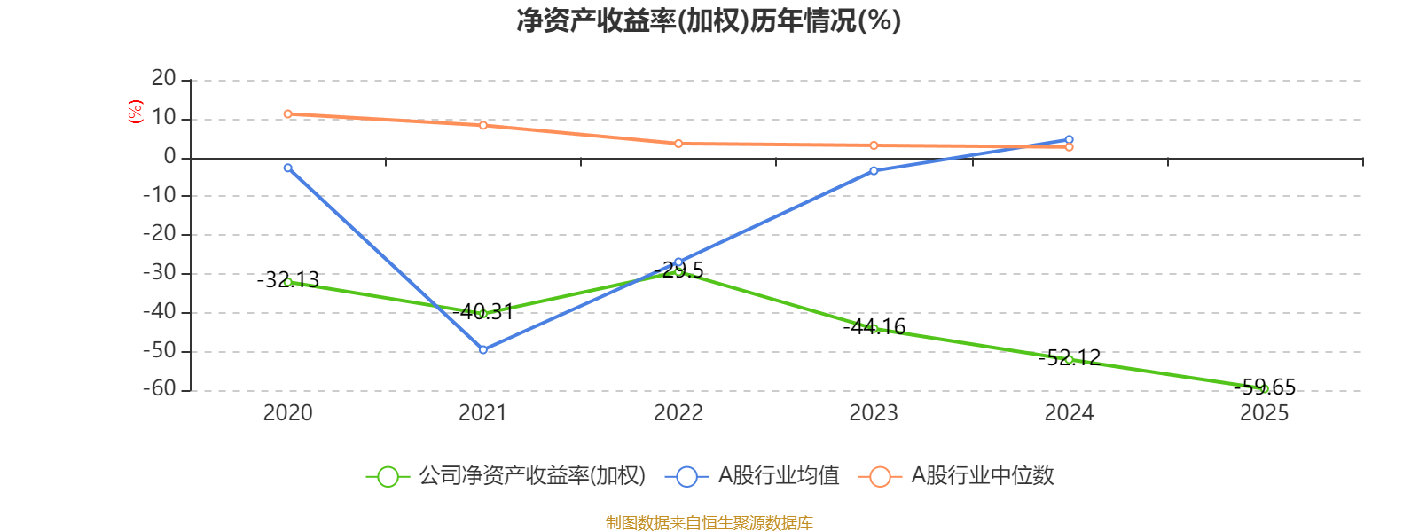 数据显示,2025年公司平均净资产收益率为-59.65%,较上年同期下降7.53个百分点。