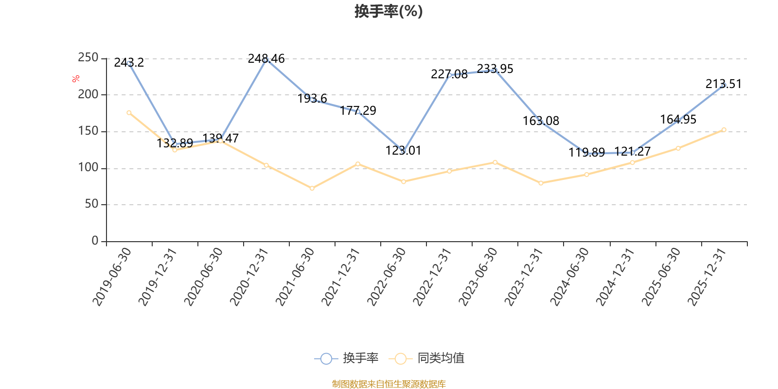 截至2025年12月31日,基金最近一年换手率约376.77%,持续高于同类均值。