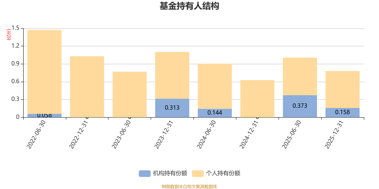 截至2025年12月31日,基金持有人共计1.02万户,合计持有7797.3万份。其中管理人员工持有198.4万份,占比2.54%,机构持有份额占比20.25%,个人投资者占比79.75%。