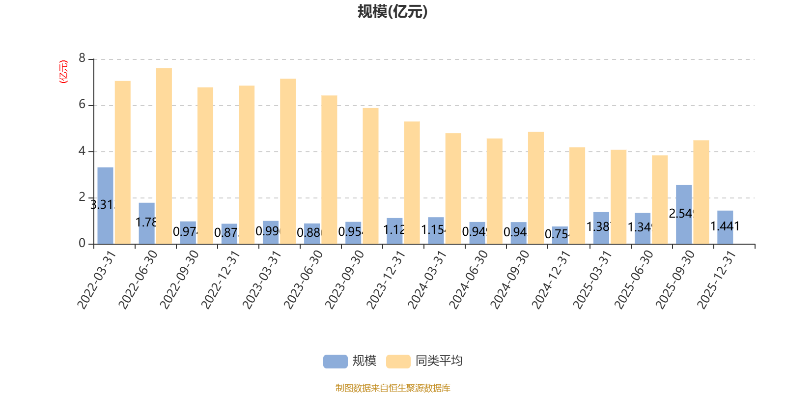 AI基金东吴新能源汽车股票A(014376)披露2025年年报,2025年基金利润4238.16万元,加权平均基金份额本期利润0.4555元。报告期内,基金净值增长率为53.79%,截至2025年末,基金规模为1.44亿元。