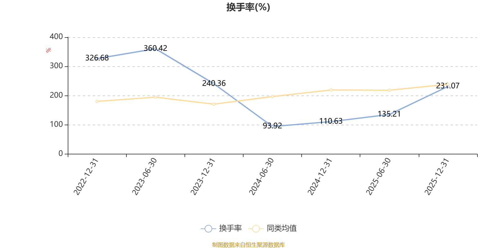 截至2025年12月31日,基金最近一年换手率约374.93%,持续2年低于同类均值。