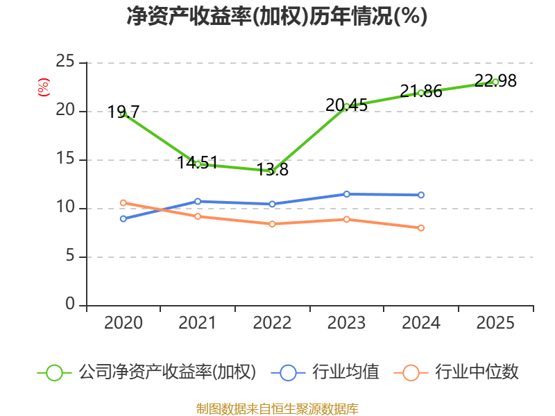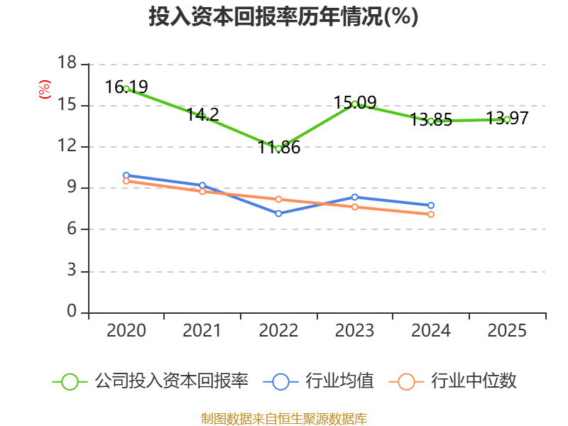 数据显示,2025年公司加权平均净资产收益率为22.98%,较上年同期上升1.12个百分点。公司2025年投入资本回报率为13.97%,较上年同期上升0.12个百分点。