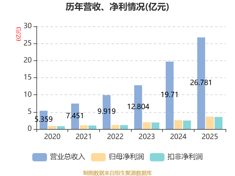2025年全年,公司研发投入金额为1.67亿元,同比增长70.25%;研发投入占营业收入比例为6.22%,相比上年同期上升1.26个百分点。此外,公司全年研发投入资本化率为0%。