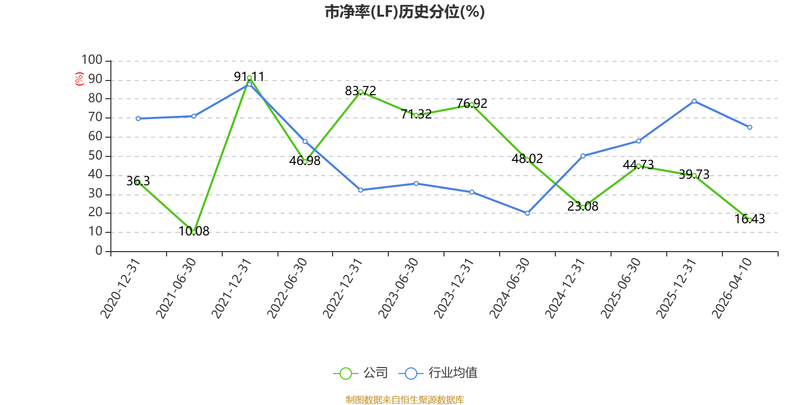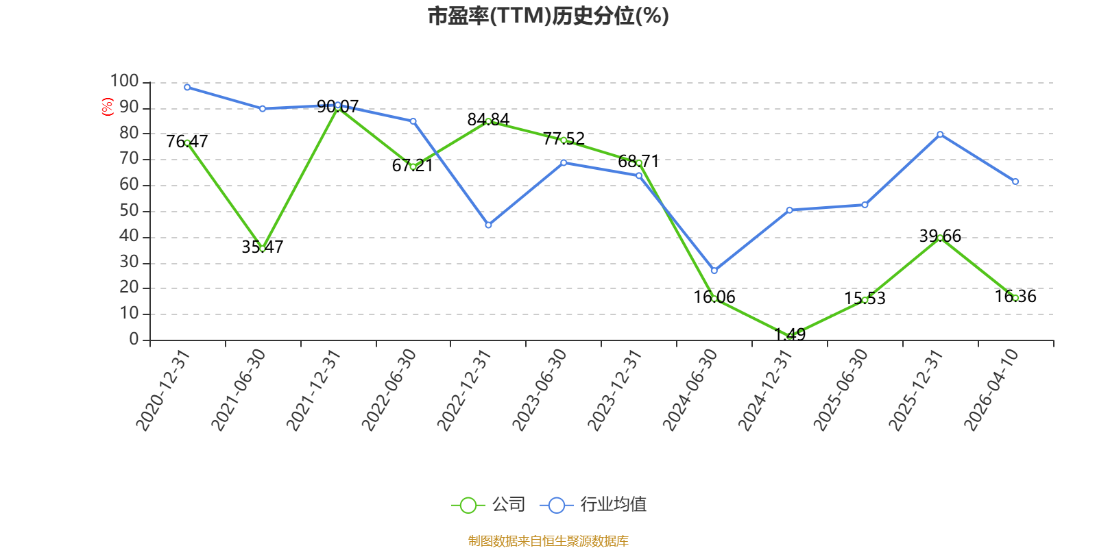 市盈率、市净率为负时,不显示当期分位数,会导致折线图中断。