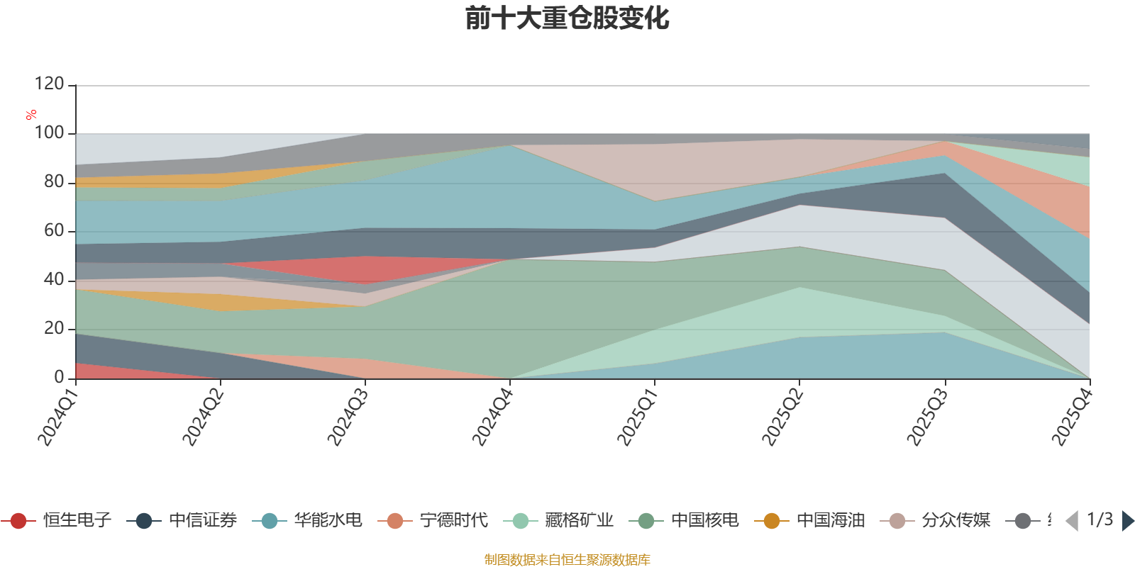 该基金持股集中度较高,近2年前十大重仓股集中度长期超过60%。截至2025年末,基金重仓股分别是川投能源、国投电力、中国石油、长江电力、中国移动、新天然气、华测检测。