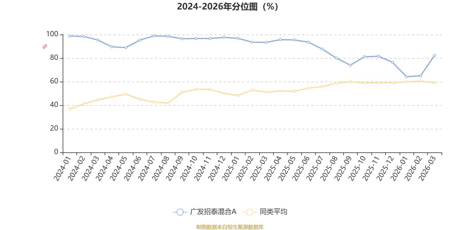 通过所选区间该基金净值增长率分位图,可以观察该基金与同类基金业绩比较情况。图为坐标原点到区间内某时点的净值增长率在同类基金中的分位数。