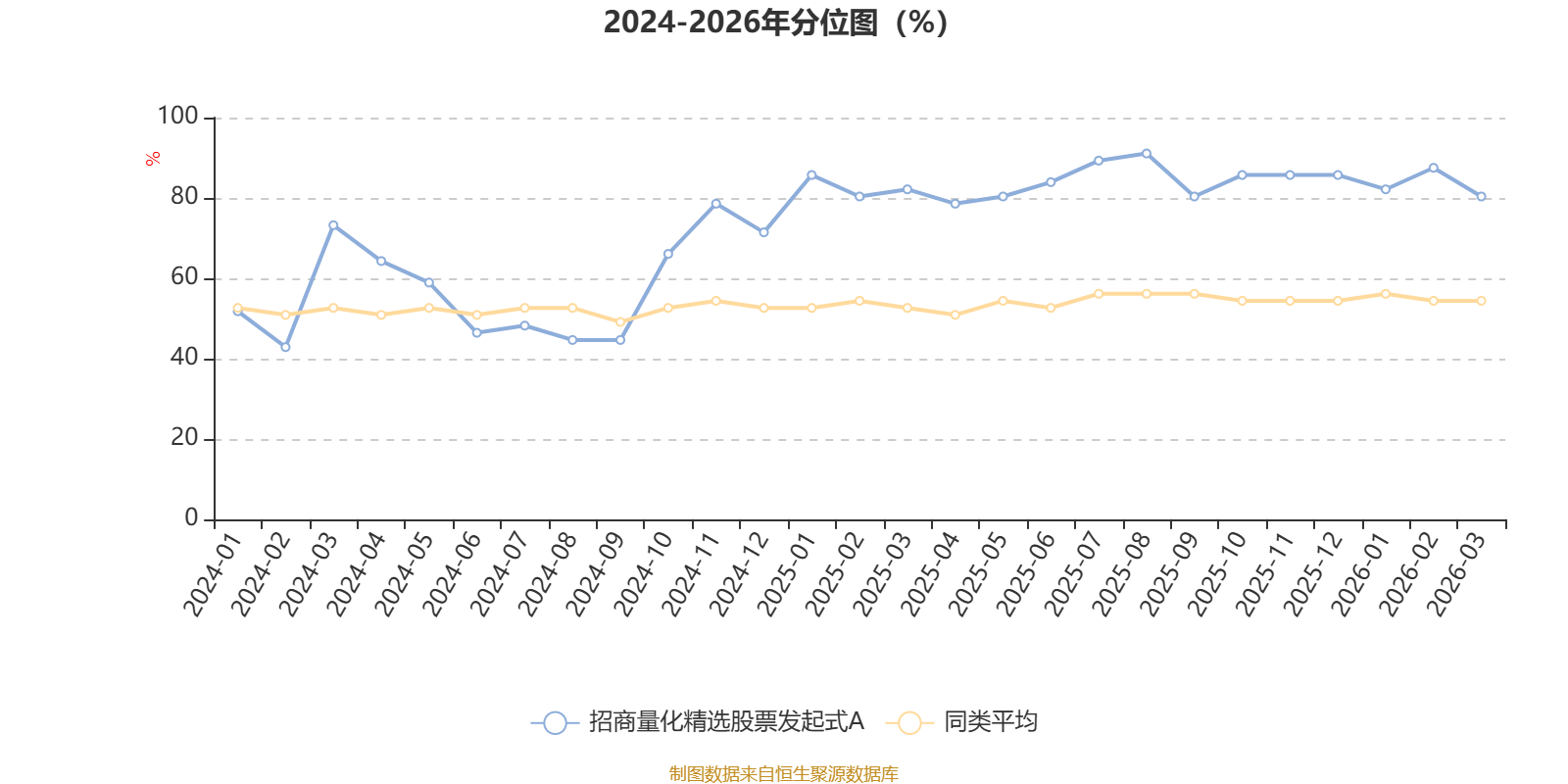 通过所选区间该基金净值增长率分位图,可以观察该基金与同类基金业绩比较情况。图为坐标原点到区间内某时点的净值增长率在同类基金中的分位数。