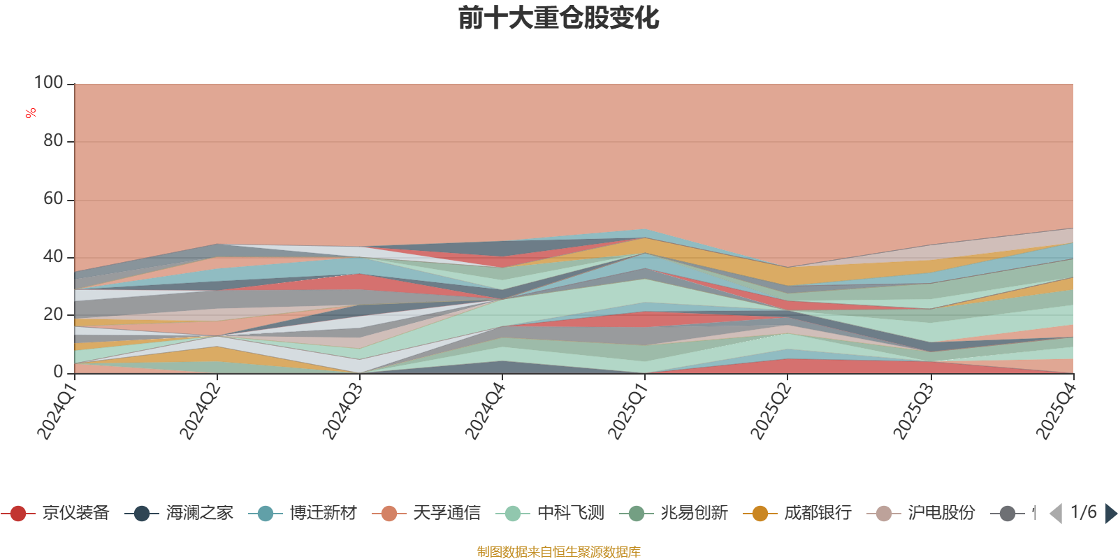 截至2025年末,基金十大重仓股分别是寒武纪、新易盛、中际旭创、源杰科技、胜宏科技、天孚通信、盛屯矿业、工业富联、中科飞测、兆易创新。