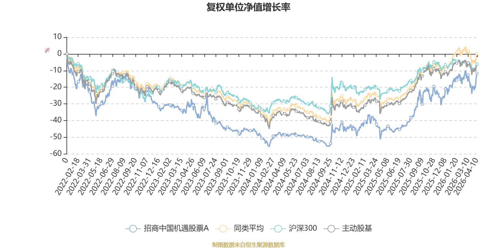 截至4月10日,招商中国机遇股票A近三个月复权单位净值增长率为4.18%,位于同类可比基金32/167;近半年复权单位净值增长率为16.87%,位于同类可比基金24/167;近一年复权单位净值增长率为70.57%,位于同类可比基金21/165;近三年复权单位净值增长率为29.12%,位于同类可比基金60/157。