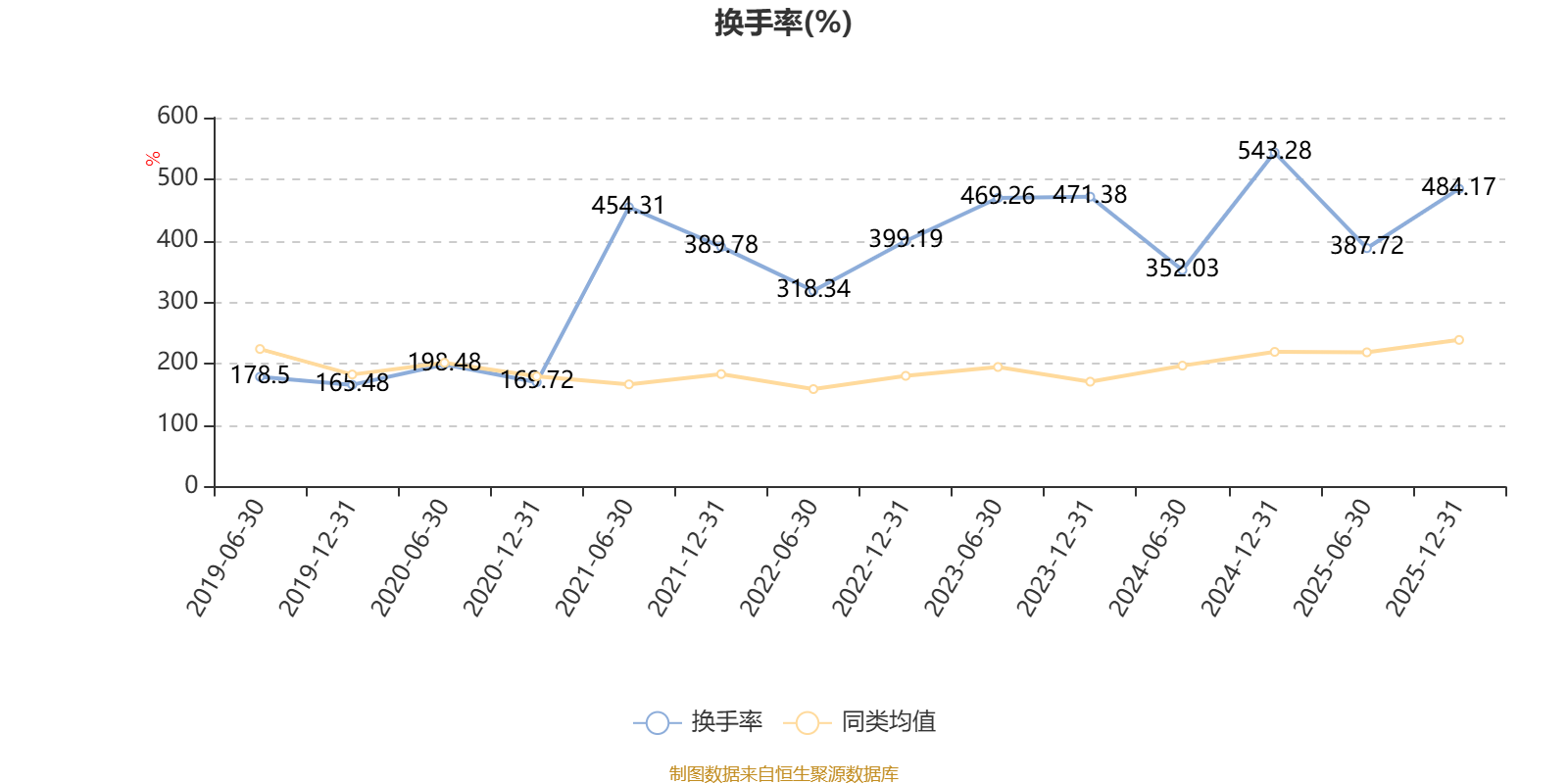 截至2025年12月31日,基金最近一年换手率约852.73%,持续5年高于同类均值。