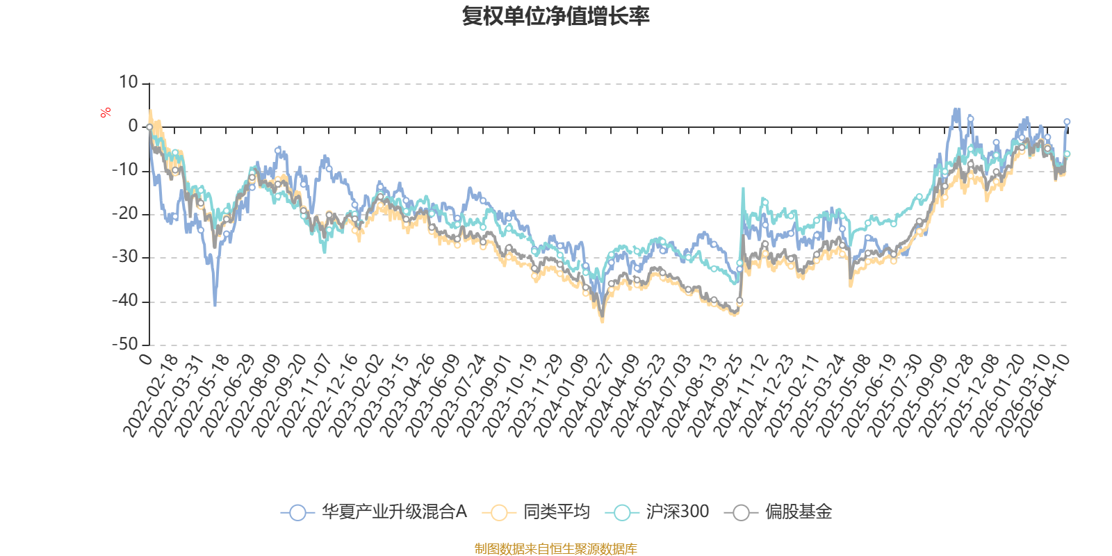 截至4月10日,华夏产业升级混合A近三个月复权单位净值增长率为4.17%,位于同类可比基金67/265;近半年复权单位净值增长率为1.73%,位于同类可比基金173/265;近一年复权单位净值增长率为49.34%,位于同类可比基金86/265;近三年复权单位净值增长率为24.32%,位于同类可比基金106/261。