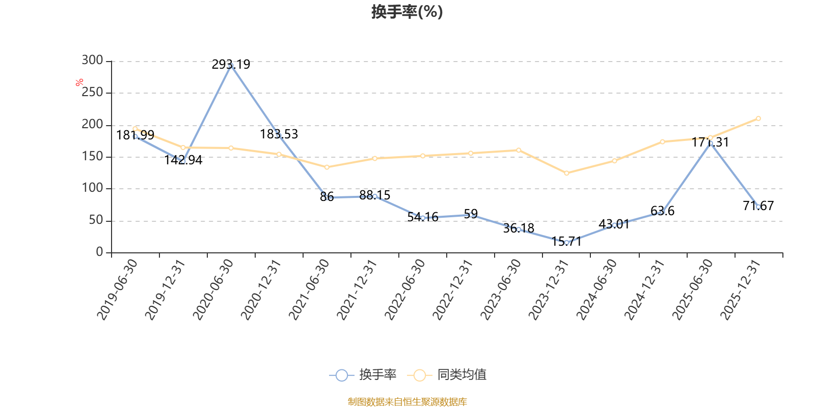 截至2025年12月31日,基金最近一年换手率约267.55%,持续5年低于同类均值。