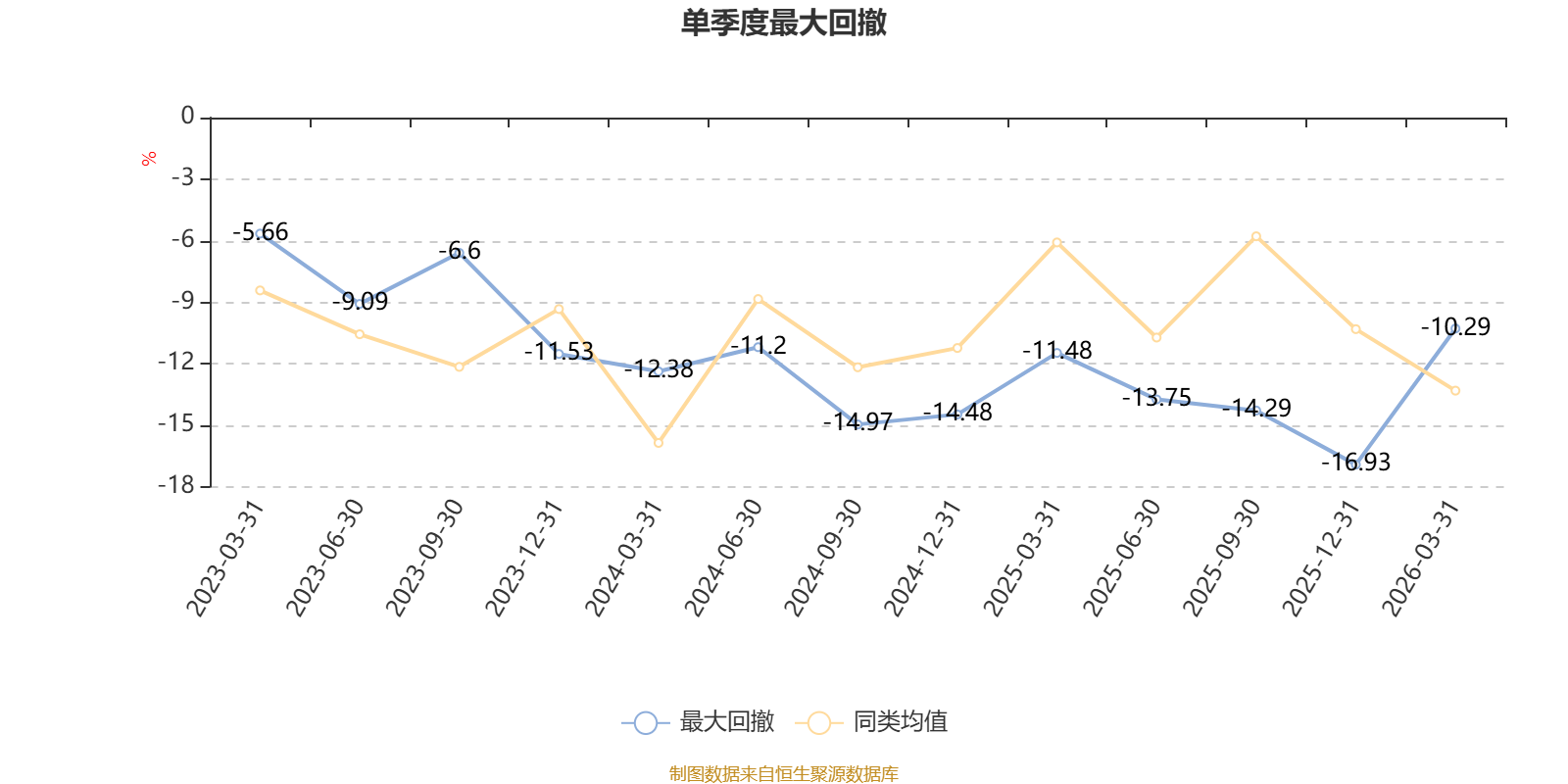 截至4月10日,基金近三年最大回撤为34.86%,同类可比基金排名211/395。单季度最大回撤出现在2025年四季度,为16.93%。