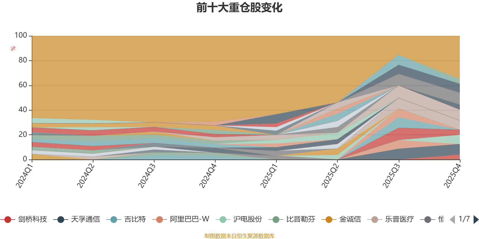 截至2025年末,基金十大重仓股分别是中际旭创、新易盛、天孚通信、沪电股份、深南电路、胜宏科技、长芯博创、源杰科技、剑桥科技、鼎泰高科。
