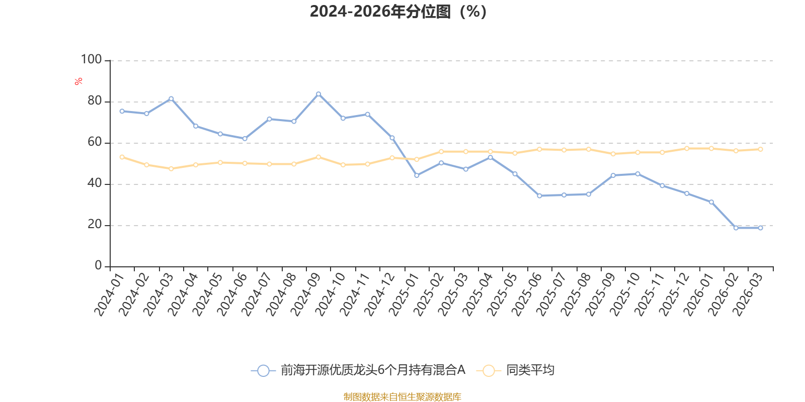 通过所选区间该基金净值增长率分位图,可以观察该基金与同类基金业绩比较情况。图为坐标原点到区间内某时点的净值增长率在同类基金中的分位数。